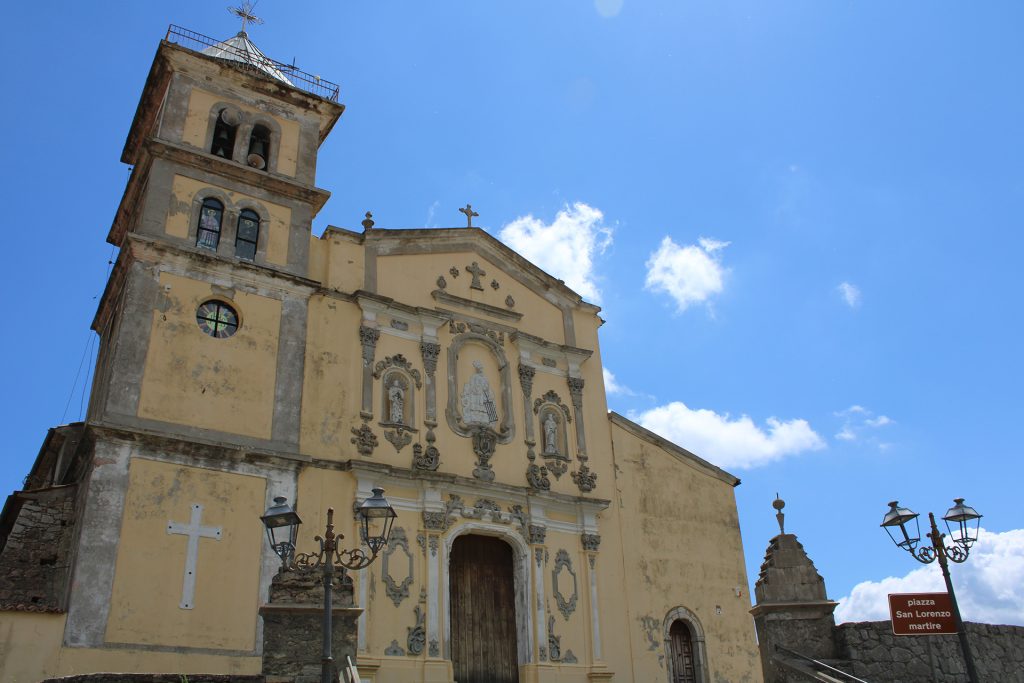 Per questo motivo si presenta con uno stile architettonico misto. La facciata, molto lavorata, ha un ampio portale incorniciato da lesene corinzie e sormontato dalle statue di San Lorenzo Martire, San Pietro e San Paolo.